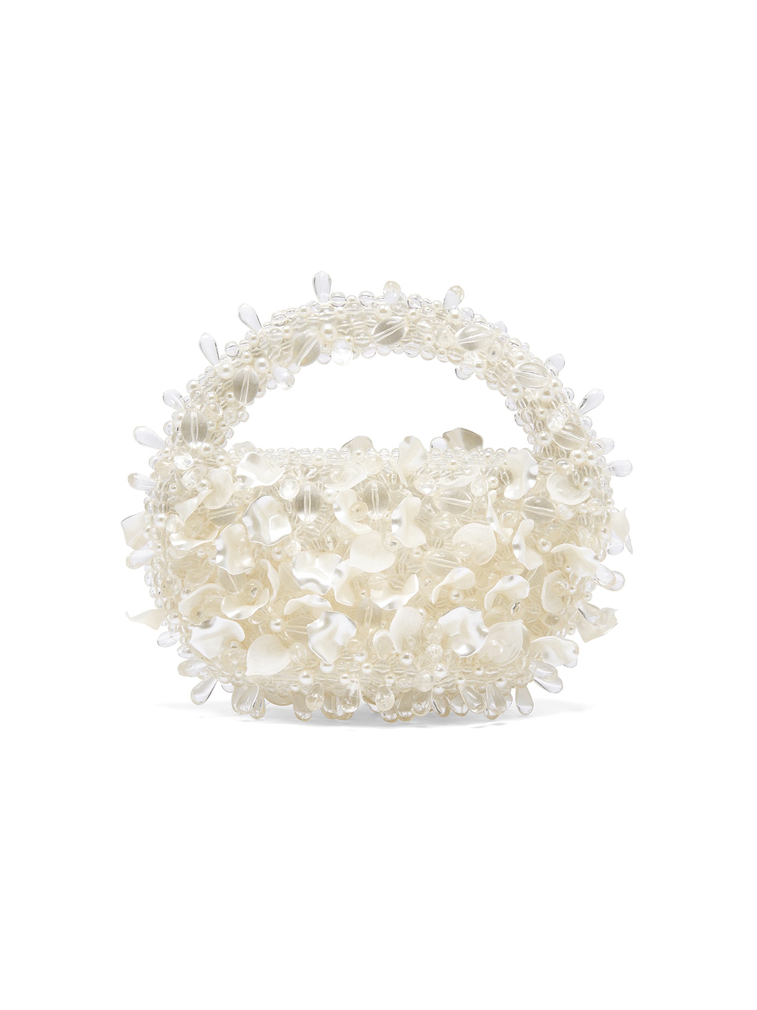Pearlescent and mesmerising, the Petal Bag in Ivory is hand embellished with 100% recycled acrylic beads. Hand stitched by our artisan makers, the Petal Bag is sure to be our next cult favourite mini bag because of its ethereal sparkle and opalescence.