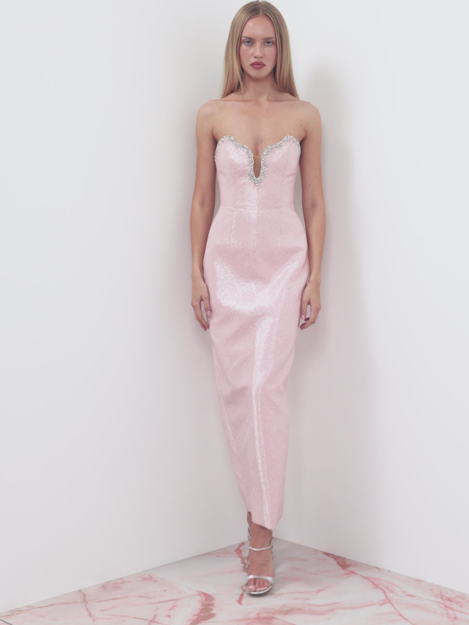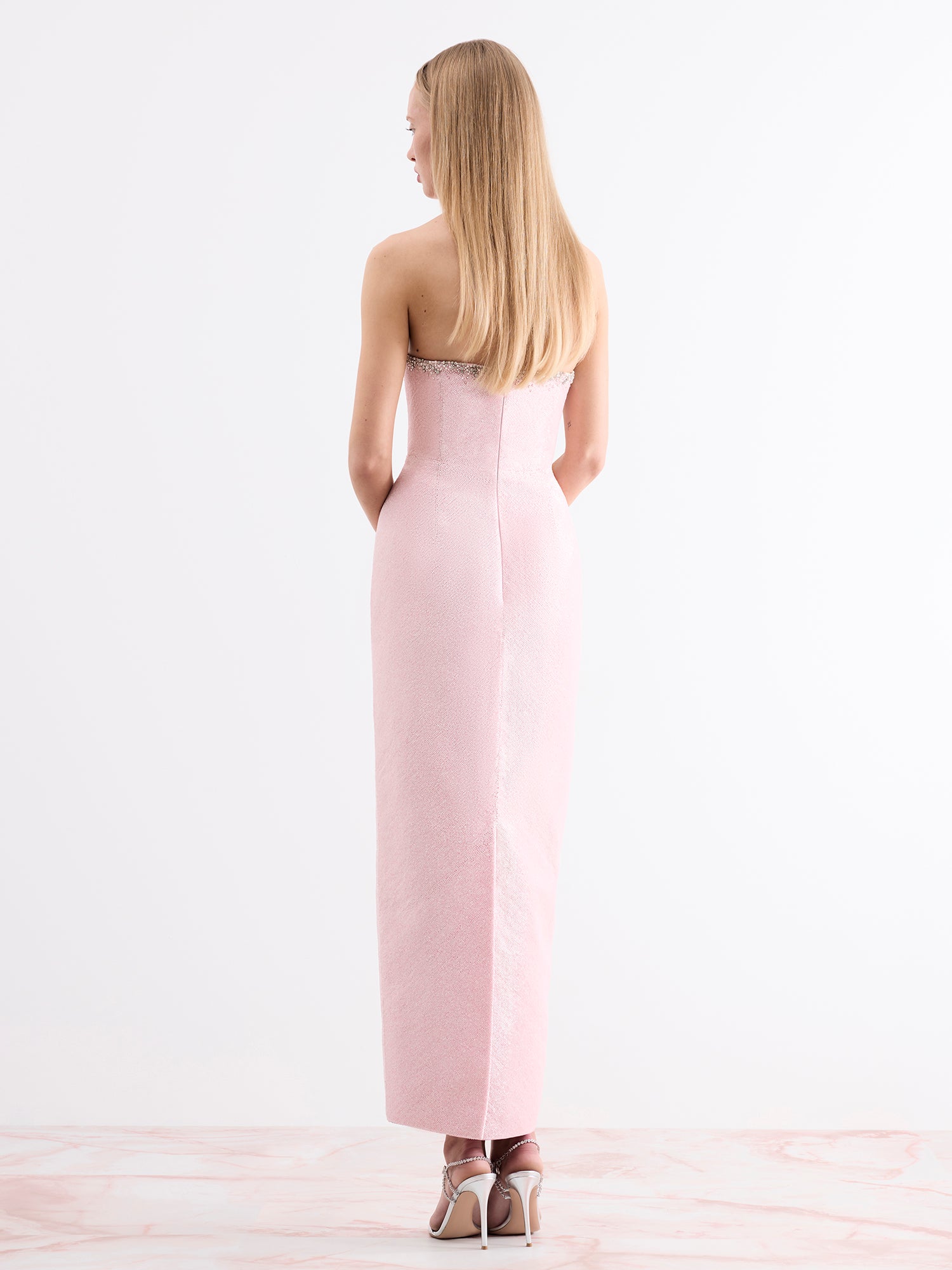 Our embellished dresses are designed to support your natural curves for the most flattering silhouette and comfortable fit. Our model is 177cm / 5'10" and wears a size S. The Selene dress fits large, if you are in-between sizes, we recommend sizing down.