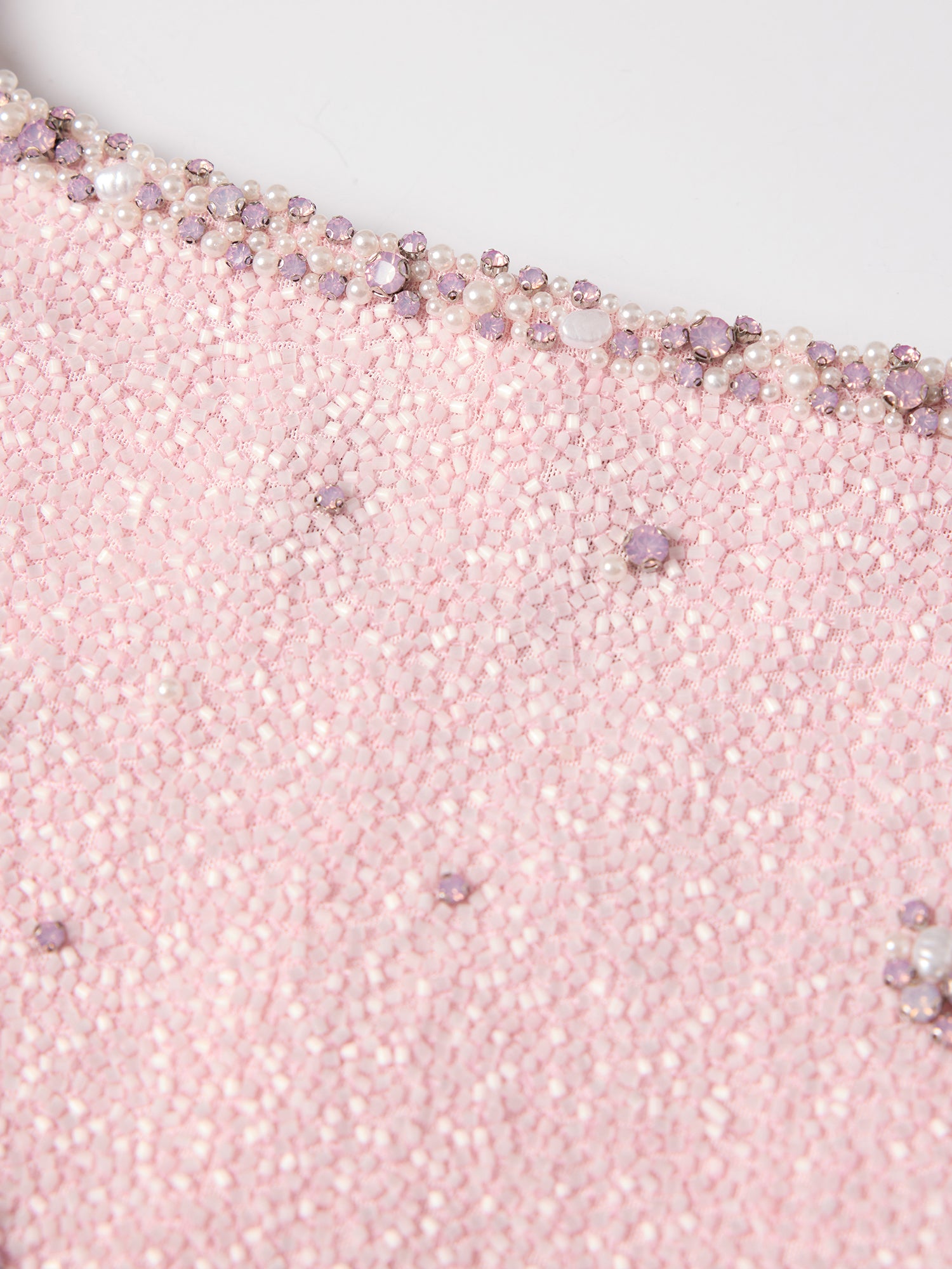Our embellished dresses are designed to support your natural curves for the most flattering silhouette and comfortable fit. Our model is 177cm / 5'10" and wears a size S. If you are inbetween sizes, we recommend sizing up.